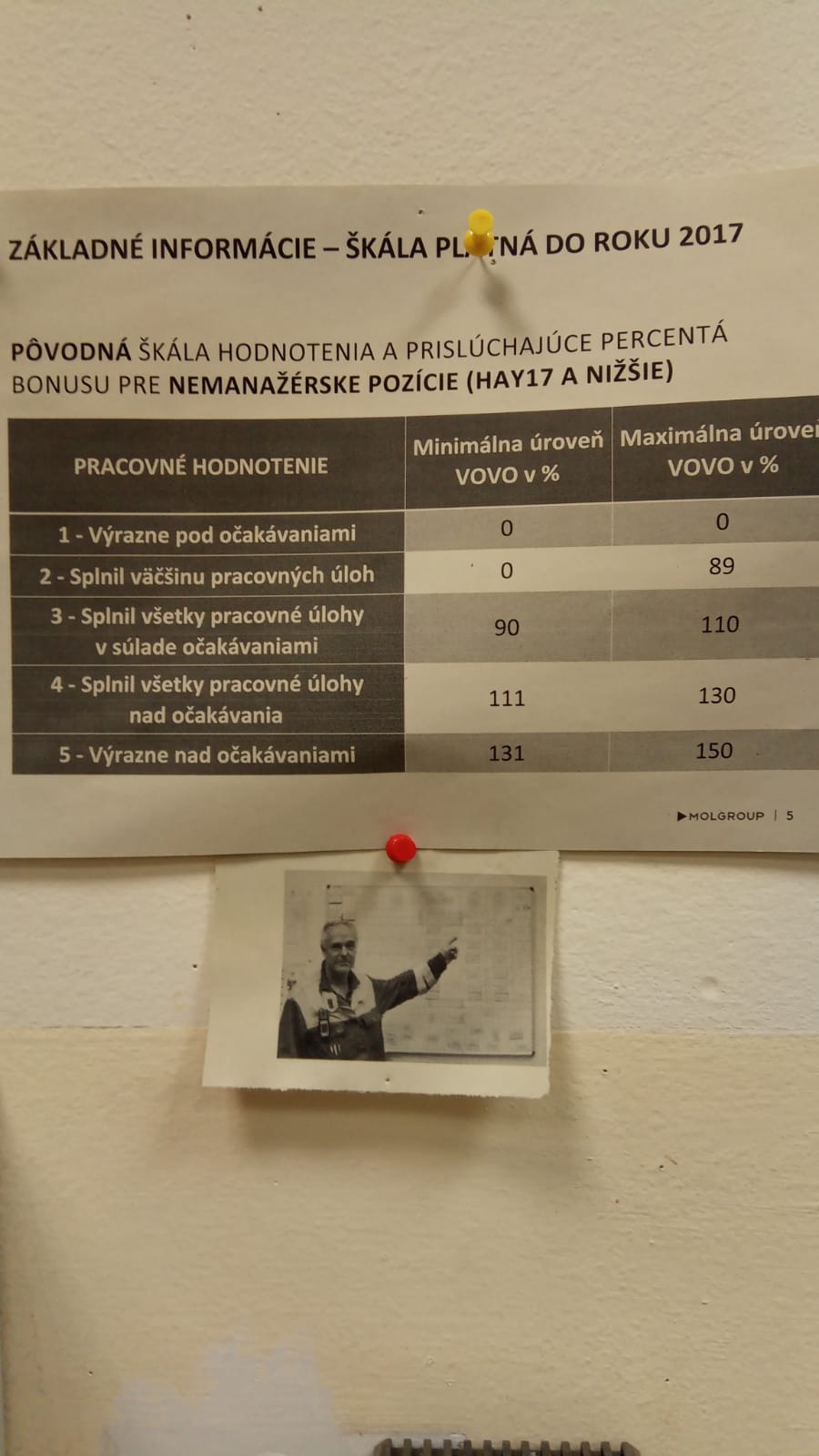 V každom prípade, vzhľadom na to, že skupina MOL mala rekordné výsledky EBITDA mala by byť aj odmena viac, ako základná sadzba 10%. Bohužiaľ presný výpočet z KZ vypadol, takže si zamestnanci musia počkať na schválenie vedením skupiny MOL. To čo z kolektívnej zmluvy zámerne vypadlo a čo by malo zamestnancov oveľa viac zaujímať je tabuľka minimálnych a maximálnych % úrovní podľa stupňa hodnotenia.
