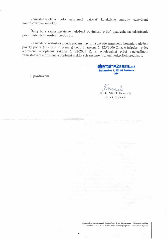 Na prvý pohľad to vyzerá, že zamestnávateľ z časti obštruoval inšpekciu práce, aj napriek hrozbe pokuty, aby sa jednoznačne nepotvrdili naše podozrenia z ešte závažnejšieho porušovania Zákonníka práce. Môžme sa
