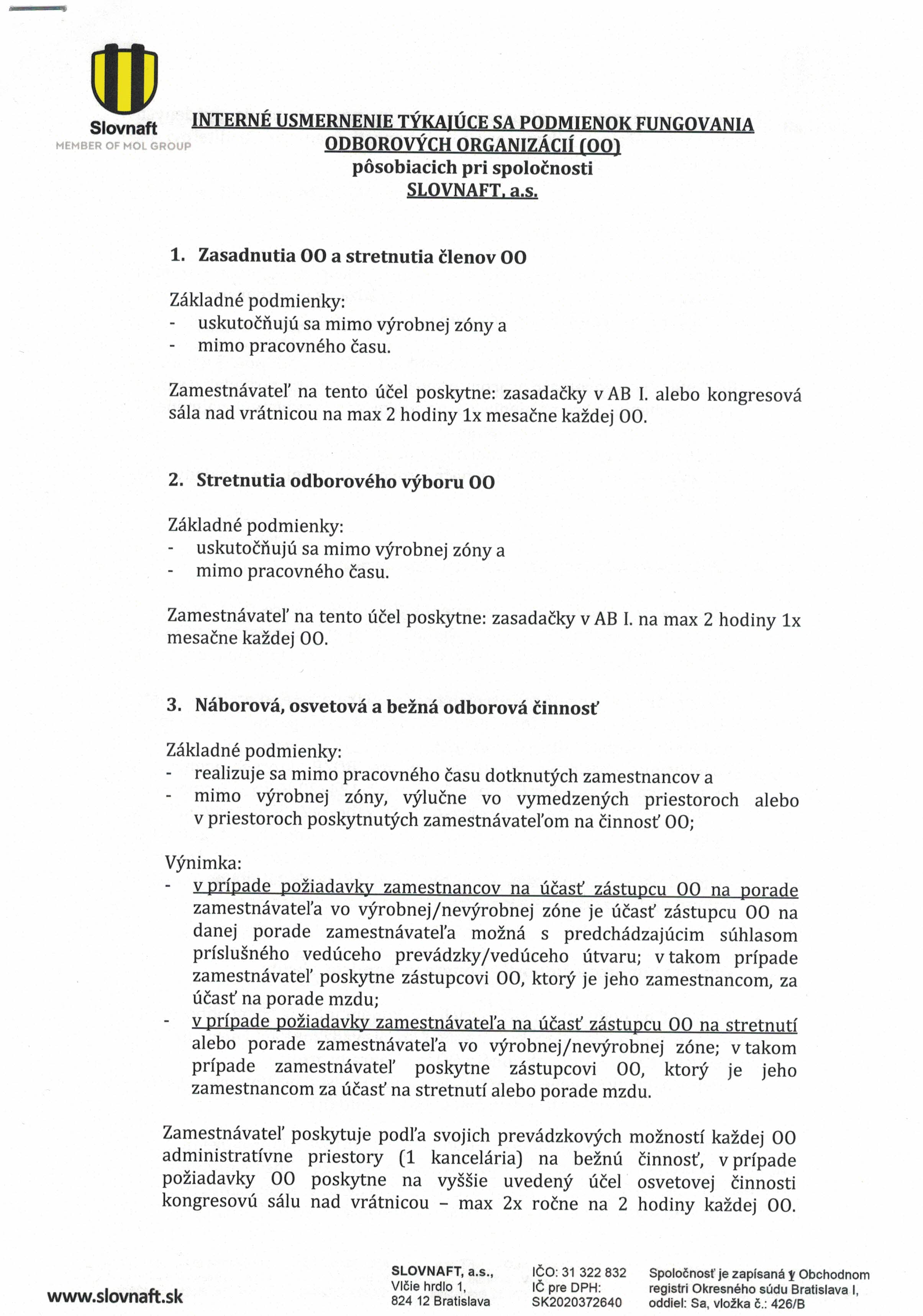 PODMIENKY ČINNOSTI ODBOROVÝCH ORGANIZÁCIÍ V SLOVNAFT, a.s.